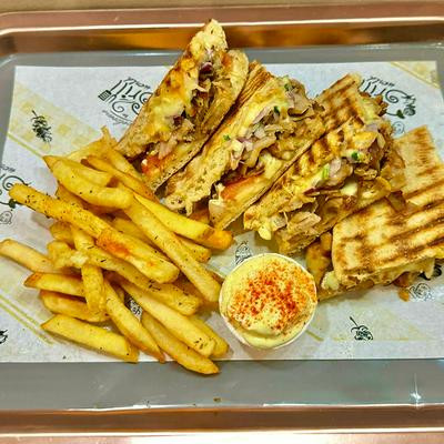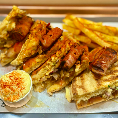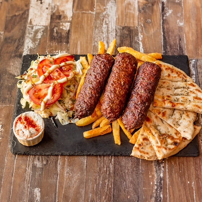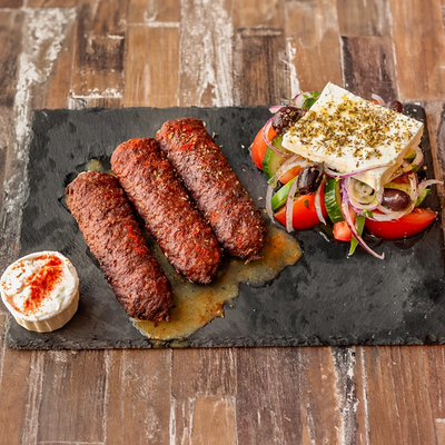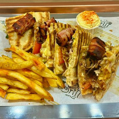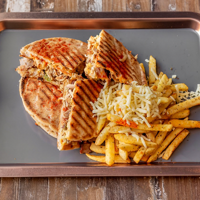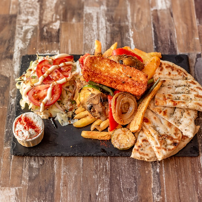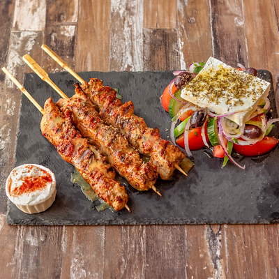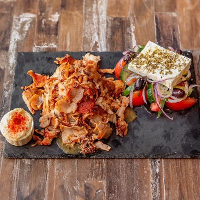 With Feta or Philadelphia. Protein, chips, dip, tomato and onions. Mr. Souvlaki's goodness embraced by our Greek style wrap.