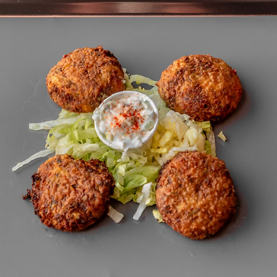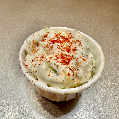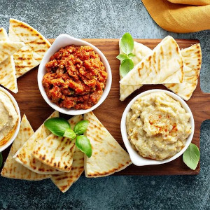 DIPS server with GREEK PITA (Tzatziki, Mustard sauce, Mr. Souvlaki secret sauce, Tirosalata, Melitzanosalata)