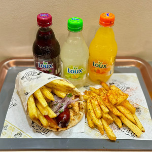 KIDS Menu: Skewer + Pita bread + Chips + Drink